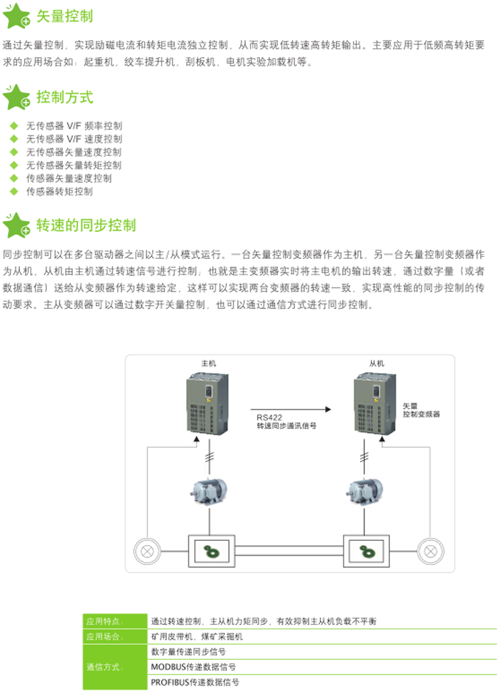 ◆ FOC(磁場(chǎng)定向矢量控制)、無感/有感矢量控制方式、V/F控制